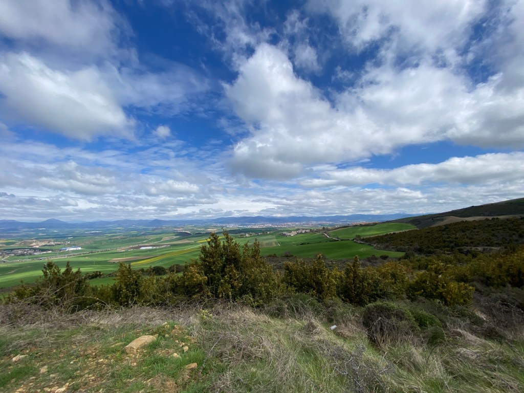 It was a tough, though lovely day on the Camino. After leaving Pamplona, we had a relatively easy walk through Cizur Minor and then through farmland that was so well maintained, it looked like a painting. James and I talked about a lot of different things, family and friends. We stopped at Zariquiegui for a cafe con leche and some food. Many other pilgrims were passing through, grabbing something as we shivered and contemplated the climb to Alto del Perdón. Warmed and refueled, we headed up. The wind blew cold and clouds drifted by as we gained altitude.