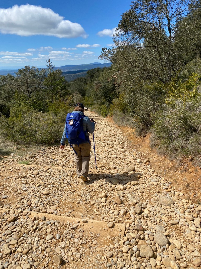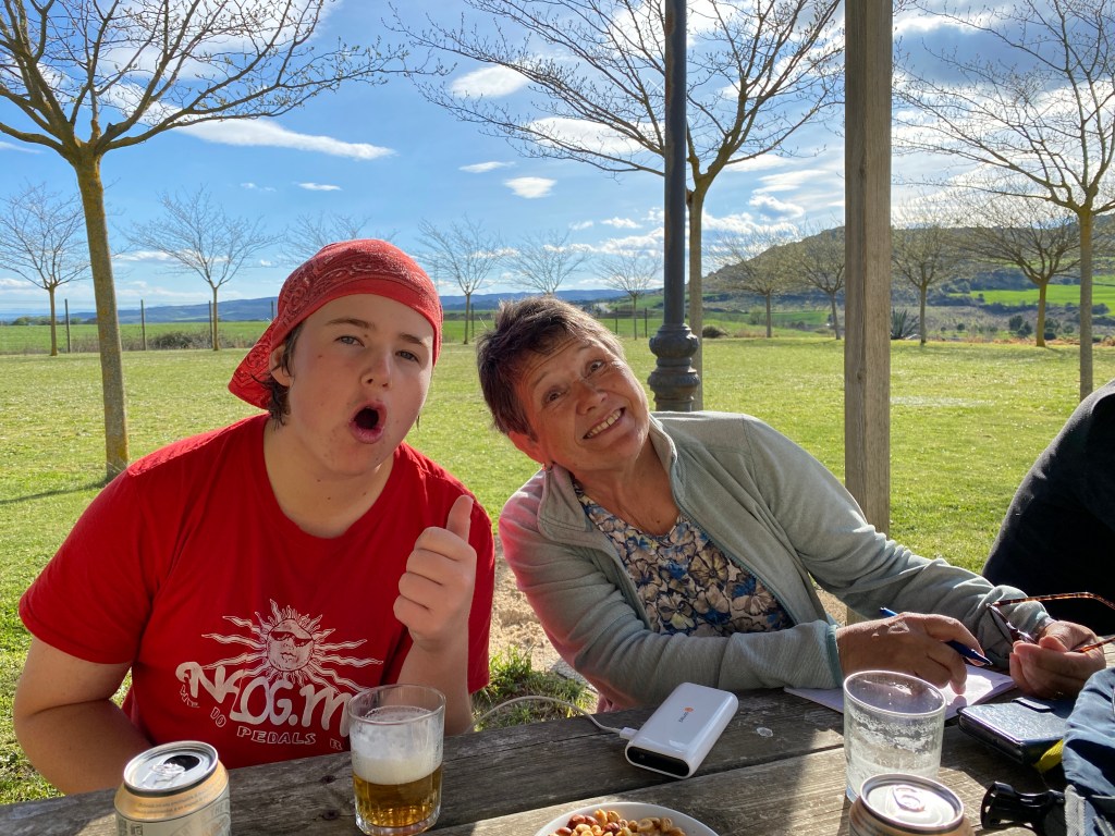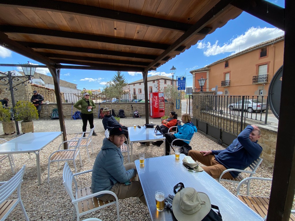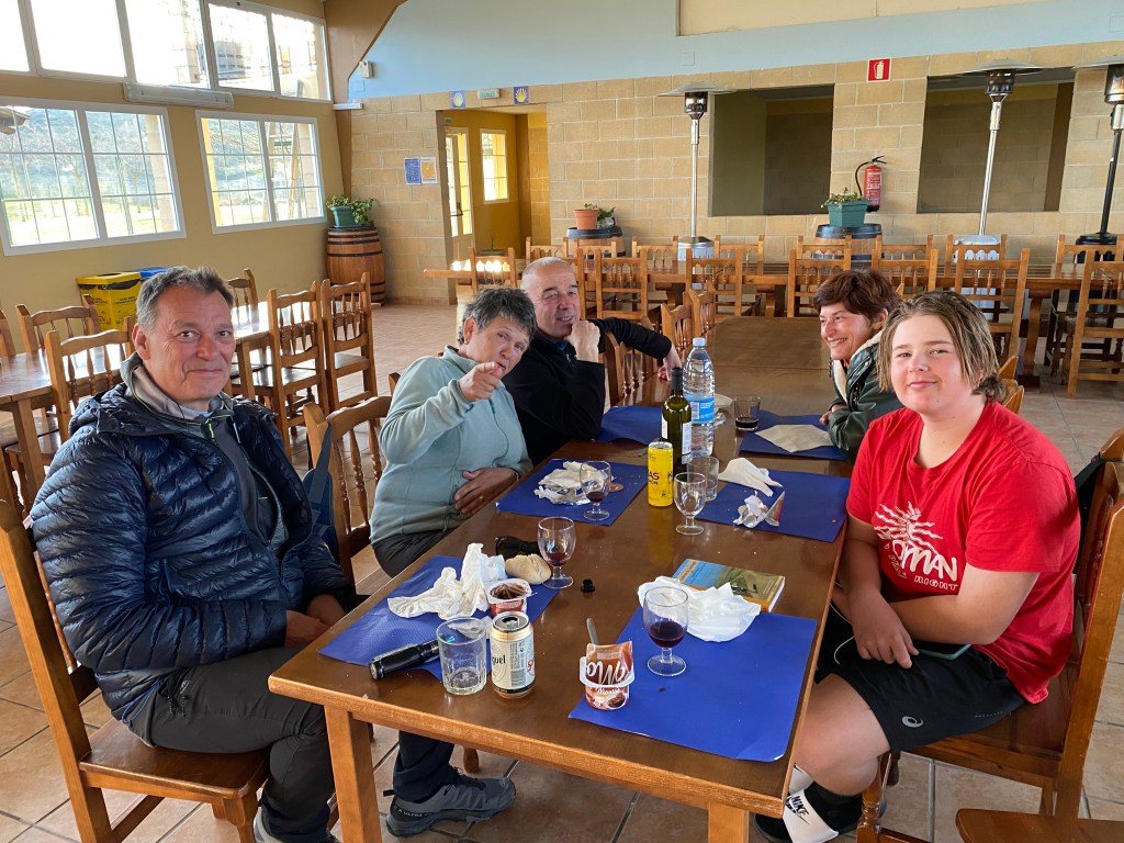 As we were sitting in the sun, we saw another pilgrim arrive and sit some way away. We called him over. Thierry had walked the Chemin d’Arles, starting in Montpelier, France over a month ago. The Chemin met the Camino here. He has a 20kg pack and has not met anyone for weeks. Over dinner, we six peregrinó had a lovely chat. We charged glasses and wished dad a happy 80th birthday. We also raised our glasses and thanked our loved ones back home.