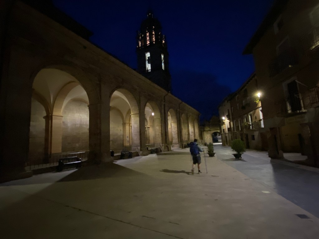 Snore. Fart. Creak. Snore. Creak. Fart. It’s almost 6:00 in the Albergue at Los Arcos and the sleepers are stirring for the long day ahead. Some of us are keen to get to Logroño, about 28km away. The alternative is to stop at 18km in the village of Viana. Last night it rained. Thankfully when I look outside it is dry.
