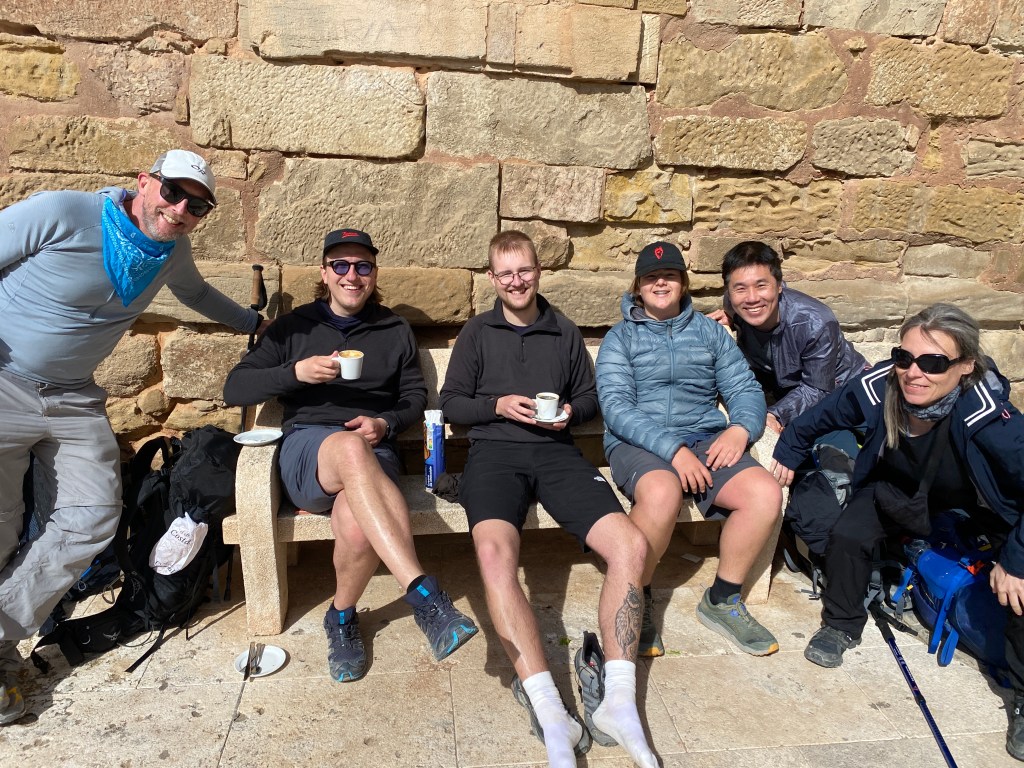 In no time we arrived in Navarrete. Our Danish friends, Mikael and Mads were enjoying a coffee near the cathedral. Suddenly the hunters had become the hunted. We also ran into Darren (Dazza) from Wimbledon, our bogan mate.