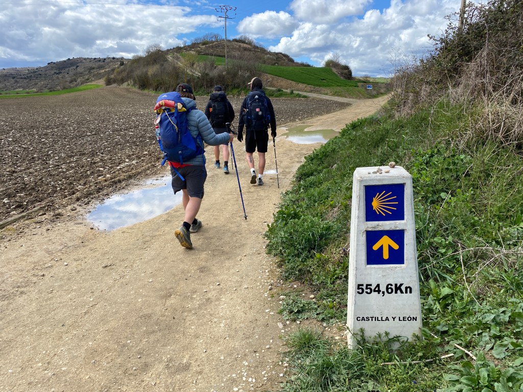 It rained heavily overnight. After deyasuno at the Albergue, we were soon squelching our way through clay mud. Close by a procession of trucks and cars roared by. The only peace was when the Camino veered away from the road into a village. You know it’s going to be a tough 28km when all of the boys are complaining about it being a little uninteresting.