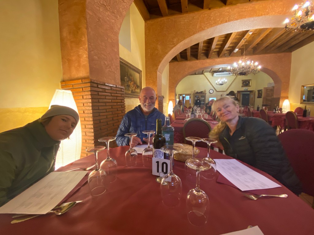 We wash clothes and rest before our pilgrim’s dinner in the restaurant. James and I share dinner with Sharon from Victoria, Australia and Brian from Banff, Canada.