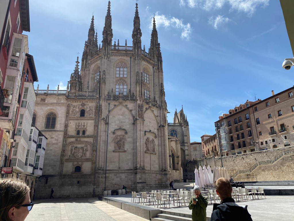 As we descend out of the fog I talk to Peter from Seattle. It’s good to hear other perspectives on the world. He has led an interesting life and has some good Seattle stories. In the distance we get glimpses of Burgos through the fog.