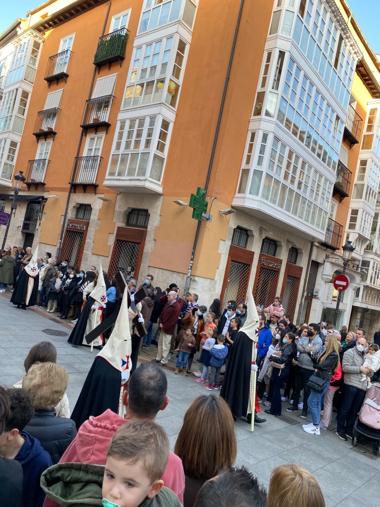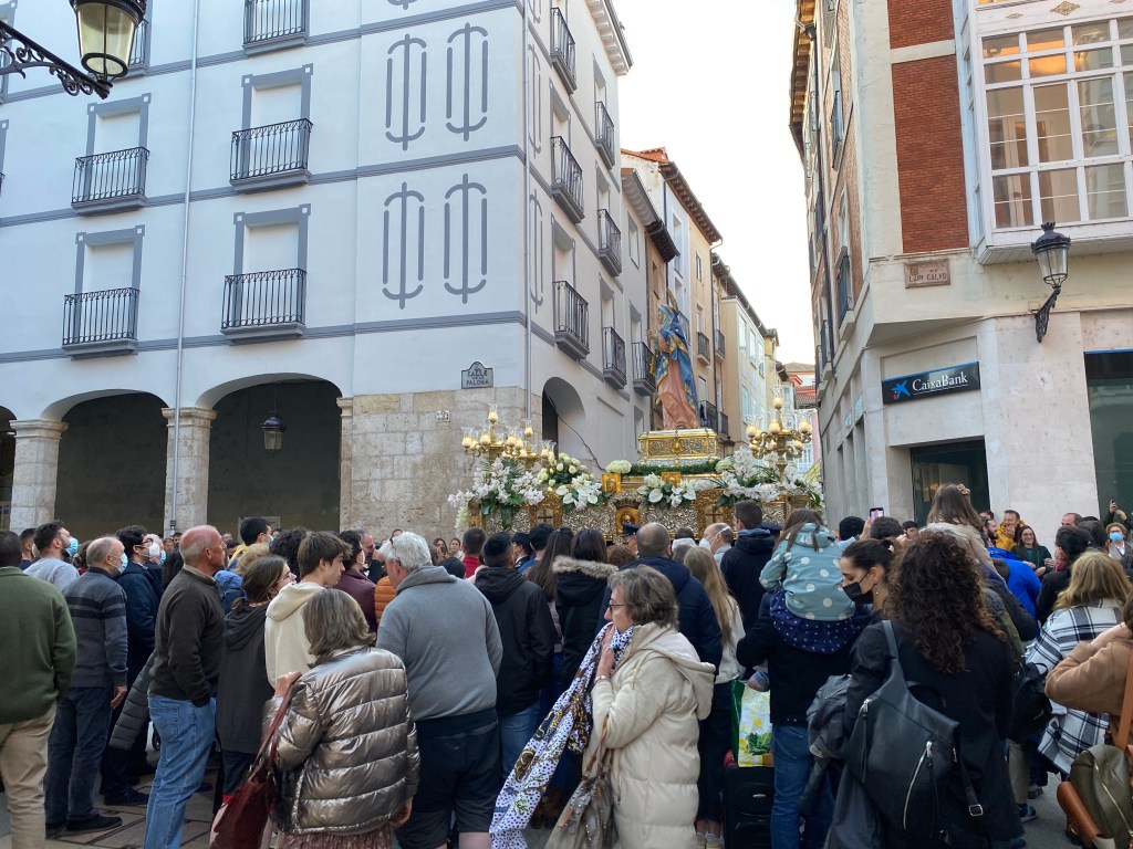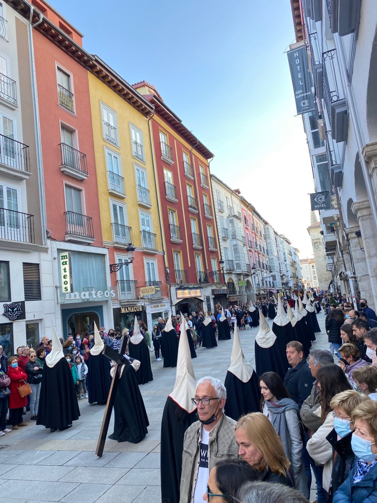 After showers, washing clothes and a rest, we enter the streets of Burgos. It is Semana Santa, Holy Week, across Spain and the locals are partying hard. Buckets of beer on ice flow from the bars to happy young locals. They sing and laugh in the warm sunshine.