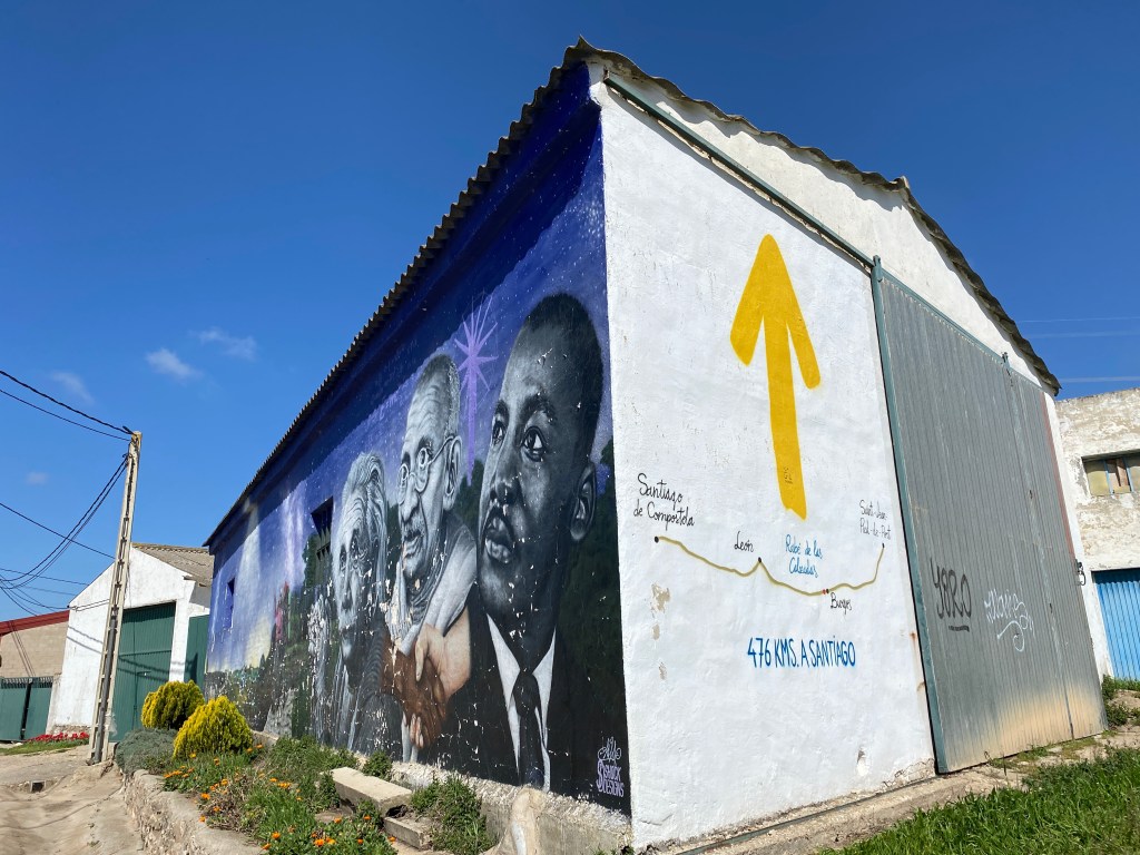 We check into the Meeting Place Albergue. The lady at the desk is so happy and the building is very new. There is a communal dinner cooked by her brother. We can’t help but book in. This gives us a few hours to rest, always appreciated. We have some long days ahead on the meseta and we need to make sure our bodies, but more importantly our feet, are up to the job.