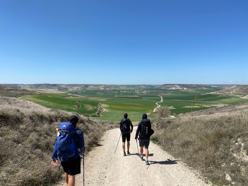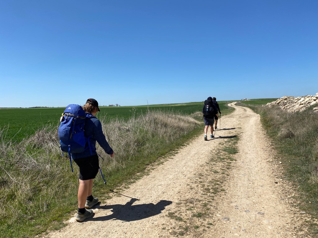 There is something magical about the Meseta though. After the chaos of Burgos, we find peace and space. Mikael and Mads feel at home as the flat reminds them of Denmark. They start singing Danish pop songs spontaneously. James and I feel at home as it reminds us of the central west of New South Wales in Australia. We could be somewhere near Dubbo, although there are wind turbines here.