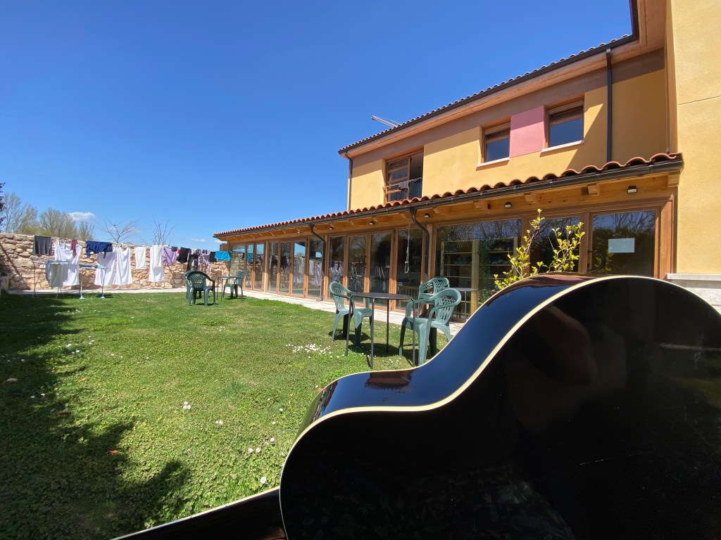 As the afternoon draws on, I enjoy a beer in the garden whilst playing the guitar from the albergue.