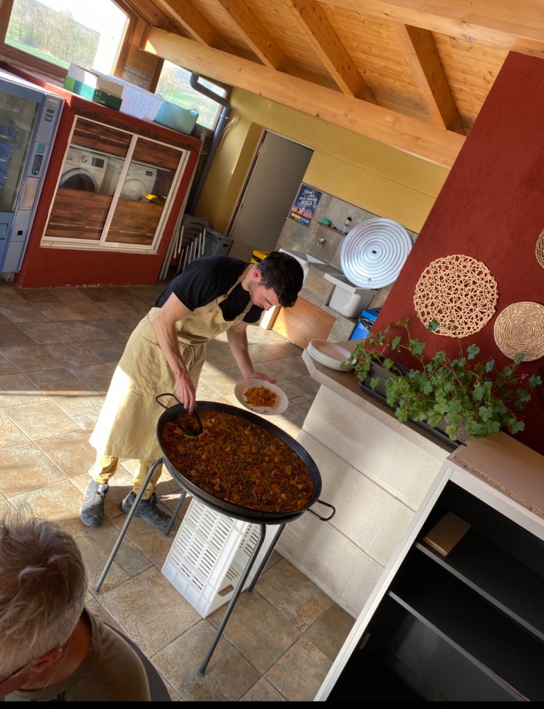 We enjoy a communal meal at the Albergue of home cooked paella. It is lovely. We talk to Stefan from Canadá who is walking from Burgos to Leon, and Ellen from New York and Lisa from Colorado who started the Camino del Norte, but decided to shift over to the Camino Frances.