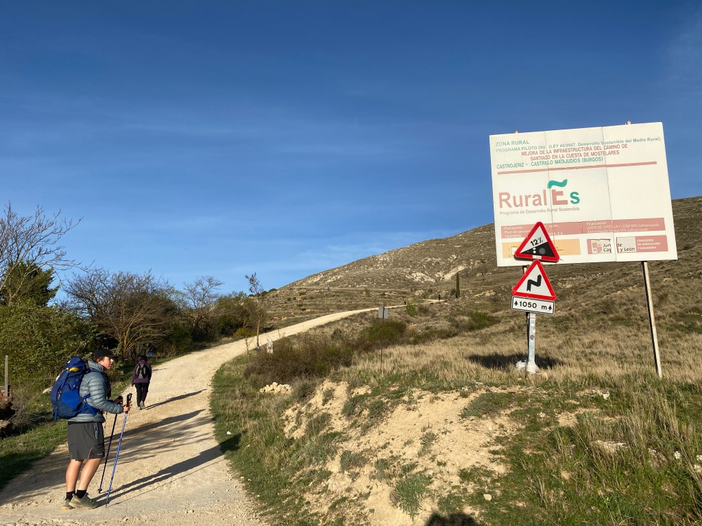 It turns out that Grant has caught a cold from somewhere. Albergue are full of coughing and sneezing peregrinó. After a terrible night, he decides to ship his pack to Fromista and carry a day pack. It turns out to be a wise move. After a light breakfast, the trail descends gently from Castrojeriz before hitting a brutal little climb known as the mule killer.