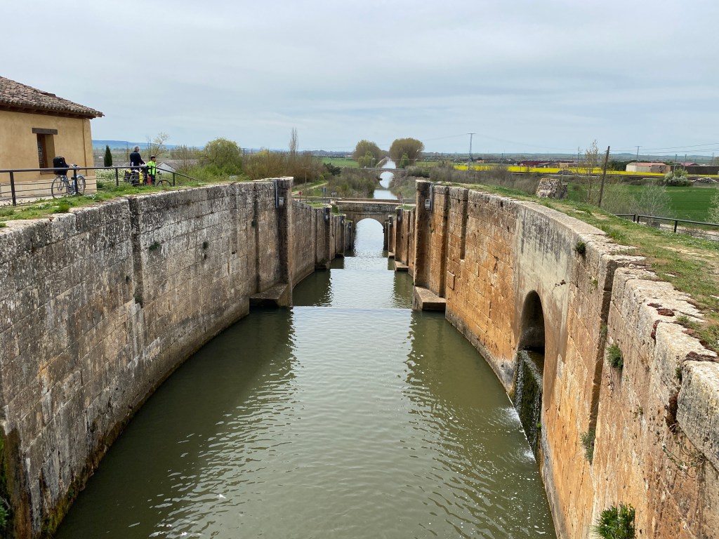 The Camino passes over the lock to enter into the village of Fromista. It is after 1:00 and we are hot and hungry.