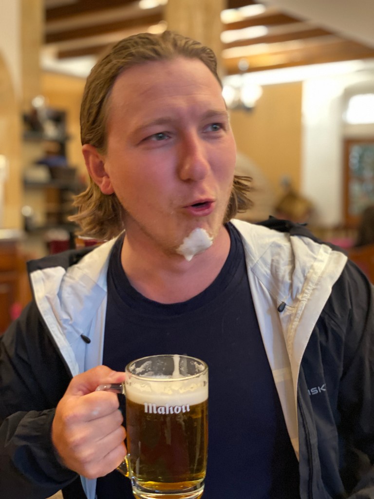 We have dinner at a restaurant next to the albergue. Thankfully the food is lovely, as is the beer.