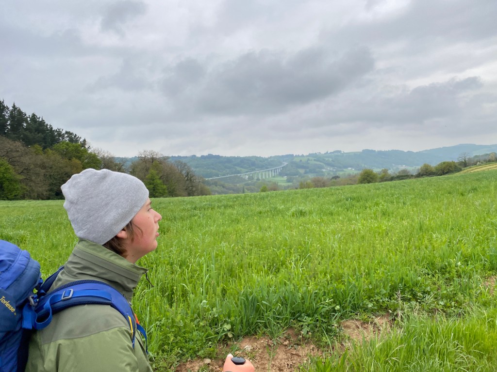 After a steep descent and then a wander next to a train line and under a freeway, we entered the woods and our first ascent.